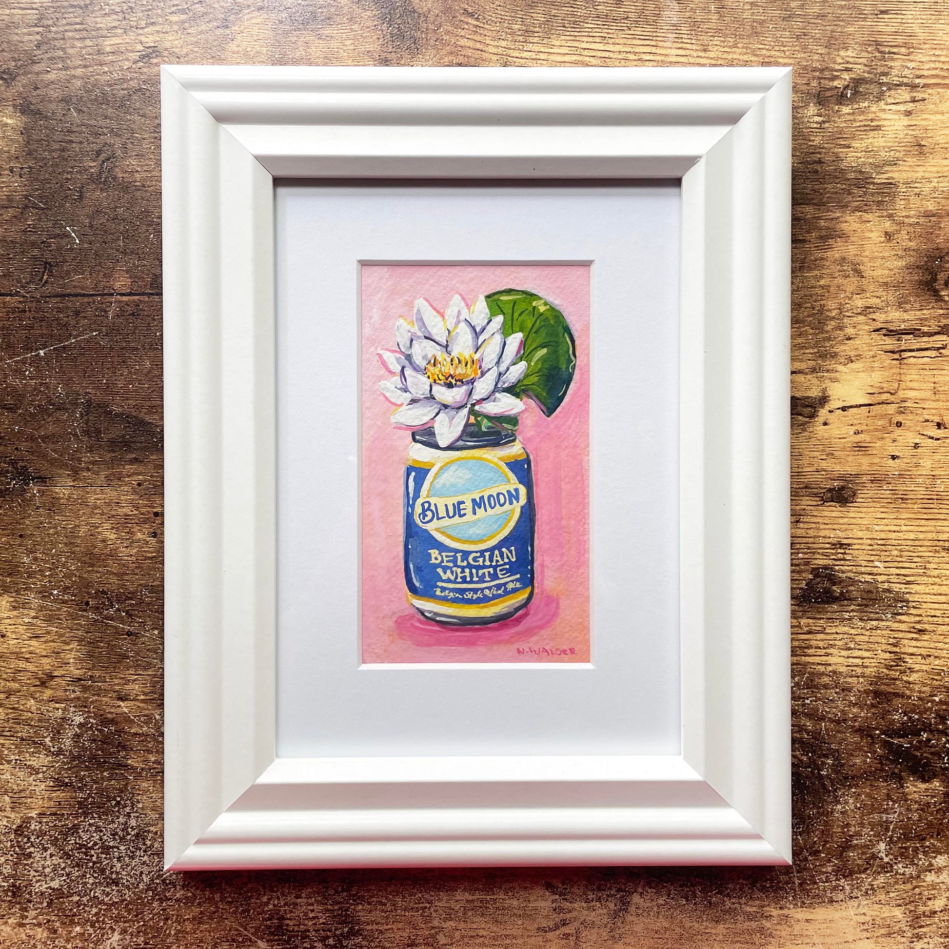 Blue Moon beer and water lilies. The water lily is a flower that corresponds with the moon, in magical practices. Blue Moon is also a delicious beer to enjoy while watching the sun set over a beautiful pond or lake.